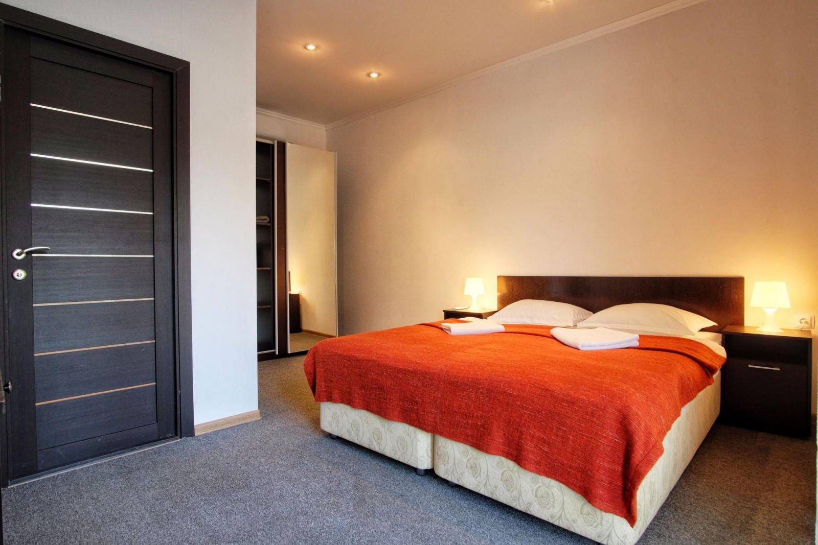 Площадью 22 кв.м. с 2 или 1 кроватью с ортопедическими матрасами. В ванной комнате есть фен и гигиенические принадлежности. Бесплатный Wi-Fi и ТВ. Кондиционер. Светонепроницаемые шторы black-out. Сейф. Холодильник *Возможно разместить доп. место.